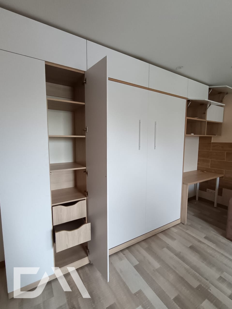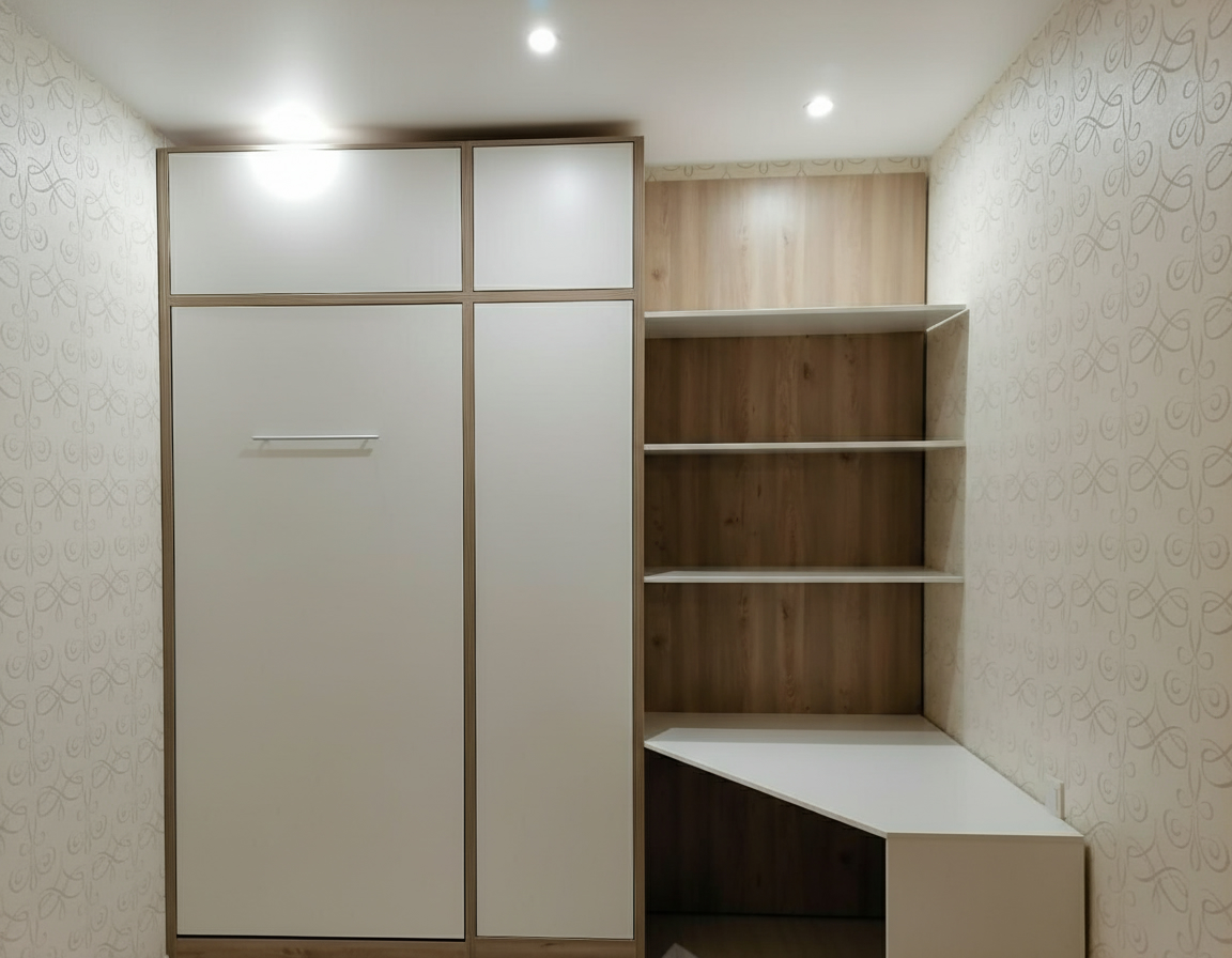 2. Можем укомплектовать шкаф-кровать на заказ навесными полками, ящиками, столами, светильниками.